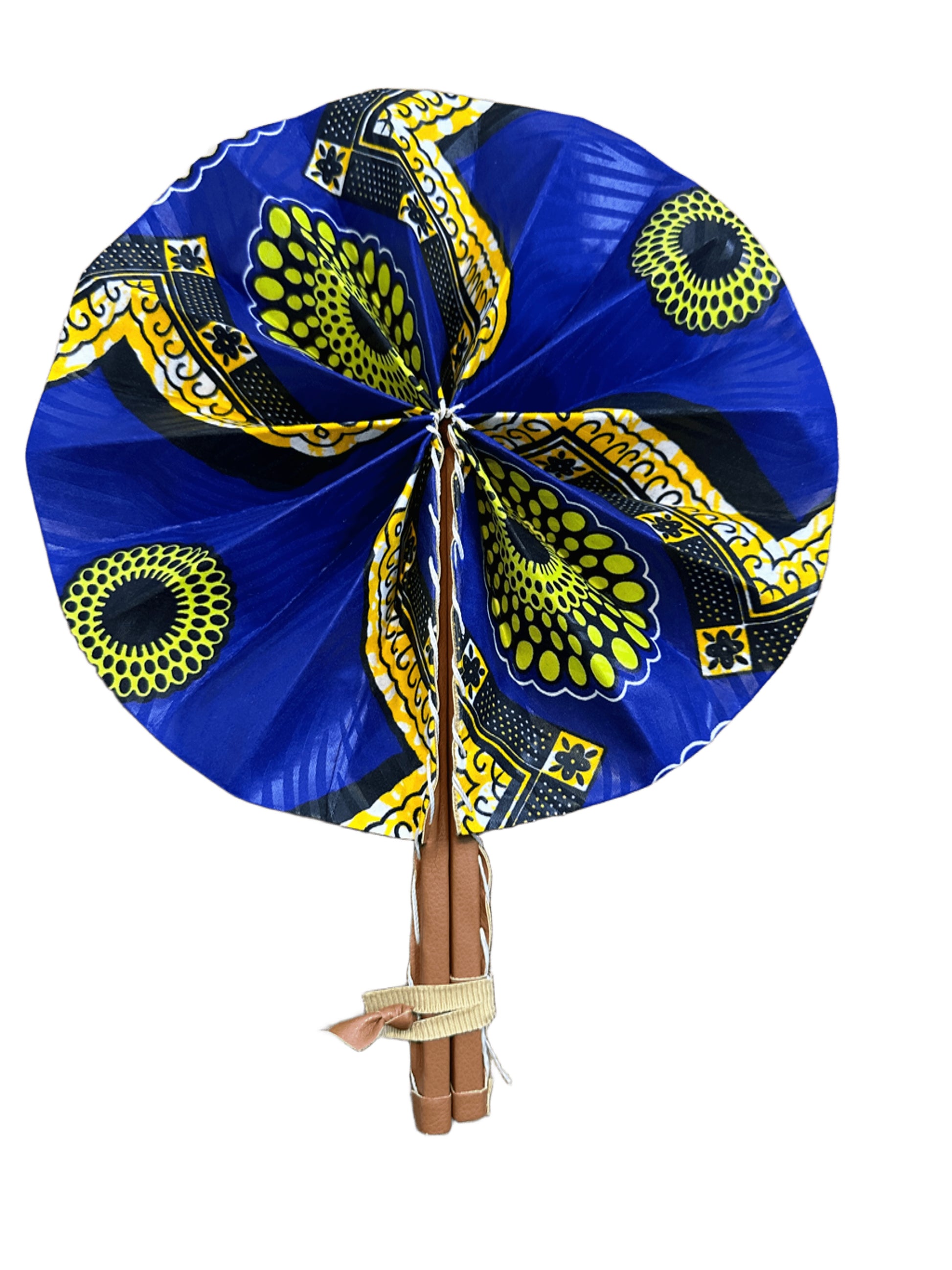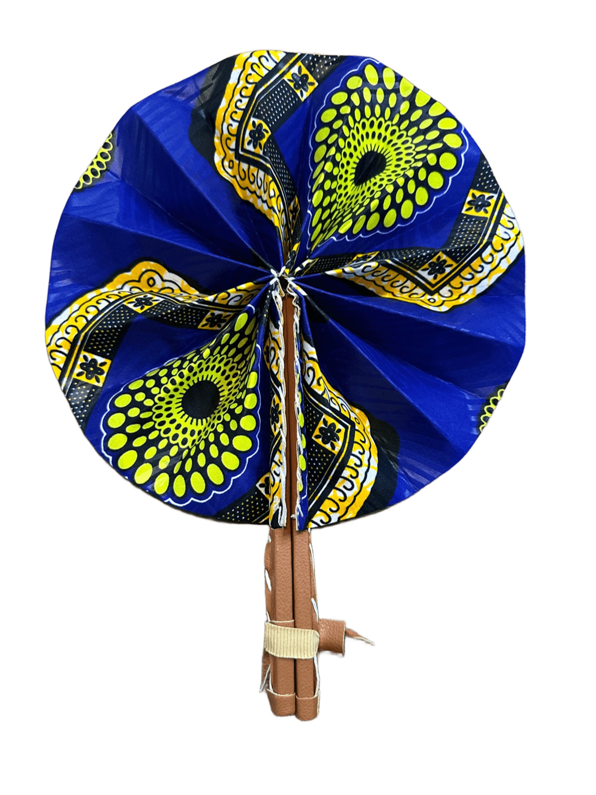 Nuestros abanicos están hechos a mano con telas wax africanas, conocidas por sus colores vibrantes y sus estampados únicos llenos de historia y simbolismo. Son plegables, ligeros y prácticos, perfectos para llevar en el bolso y refrescarte con estilo en cualquier momento. Cada abanico es una pieza única que combina tradición africana con un toque moderno y elegante.