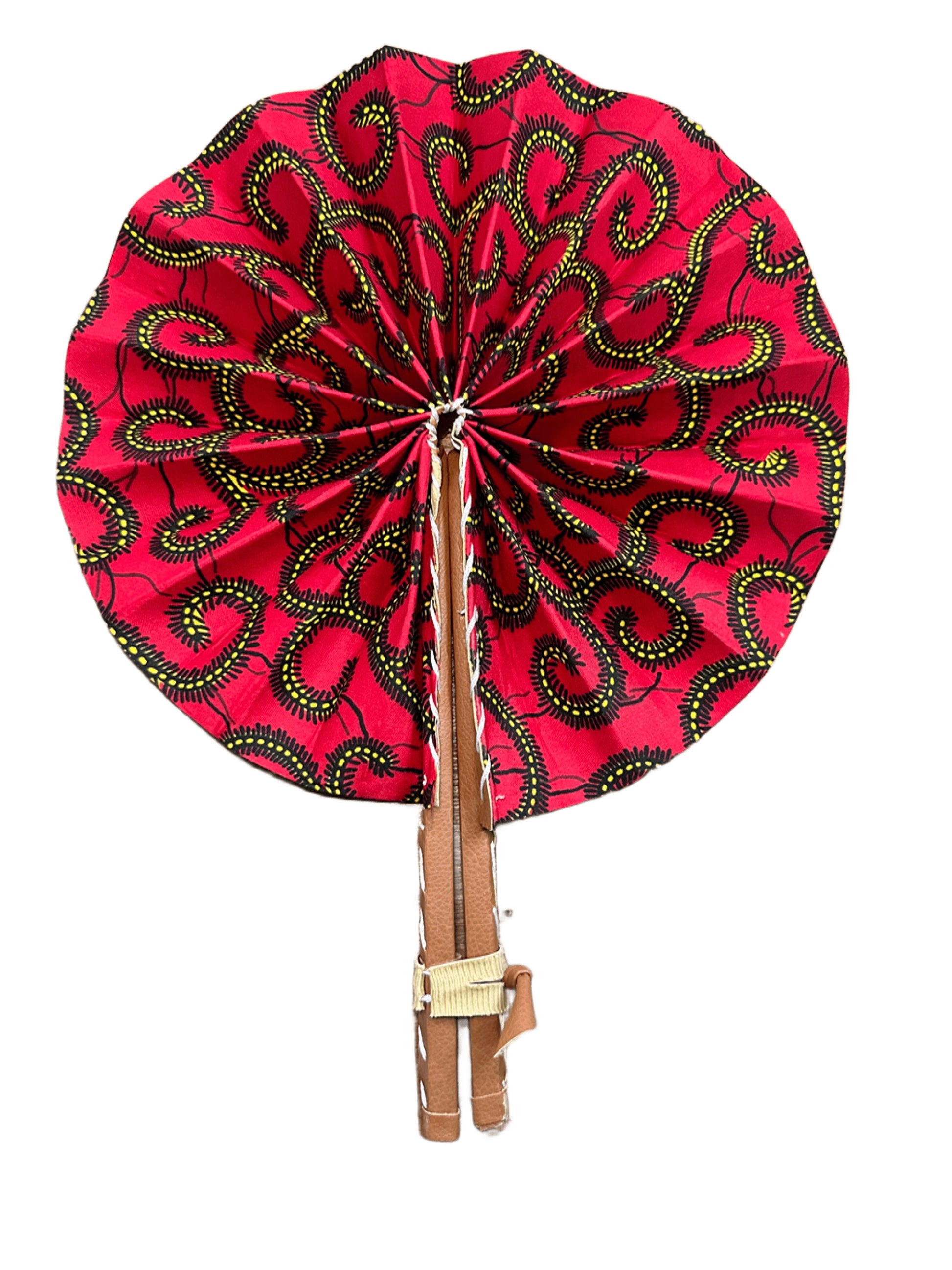 Nuestros abanicos están hechos a mano con telas wax africanas, conocidas por sus colores vibrantes y sus estampados únicos llenos de historia y simbolismo. Son plegables, ligeros y prácticos, perfectos para llevar en el bolso y refrescarte con estilo en cualquier momento. Cada abanico es una pieza única que combina tradición africana con un toque moderno y elegante.