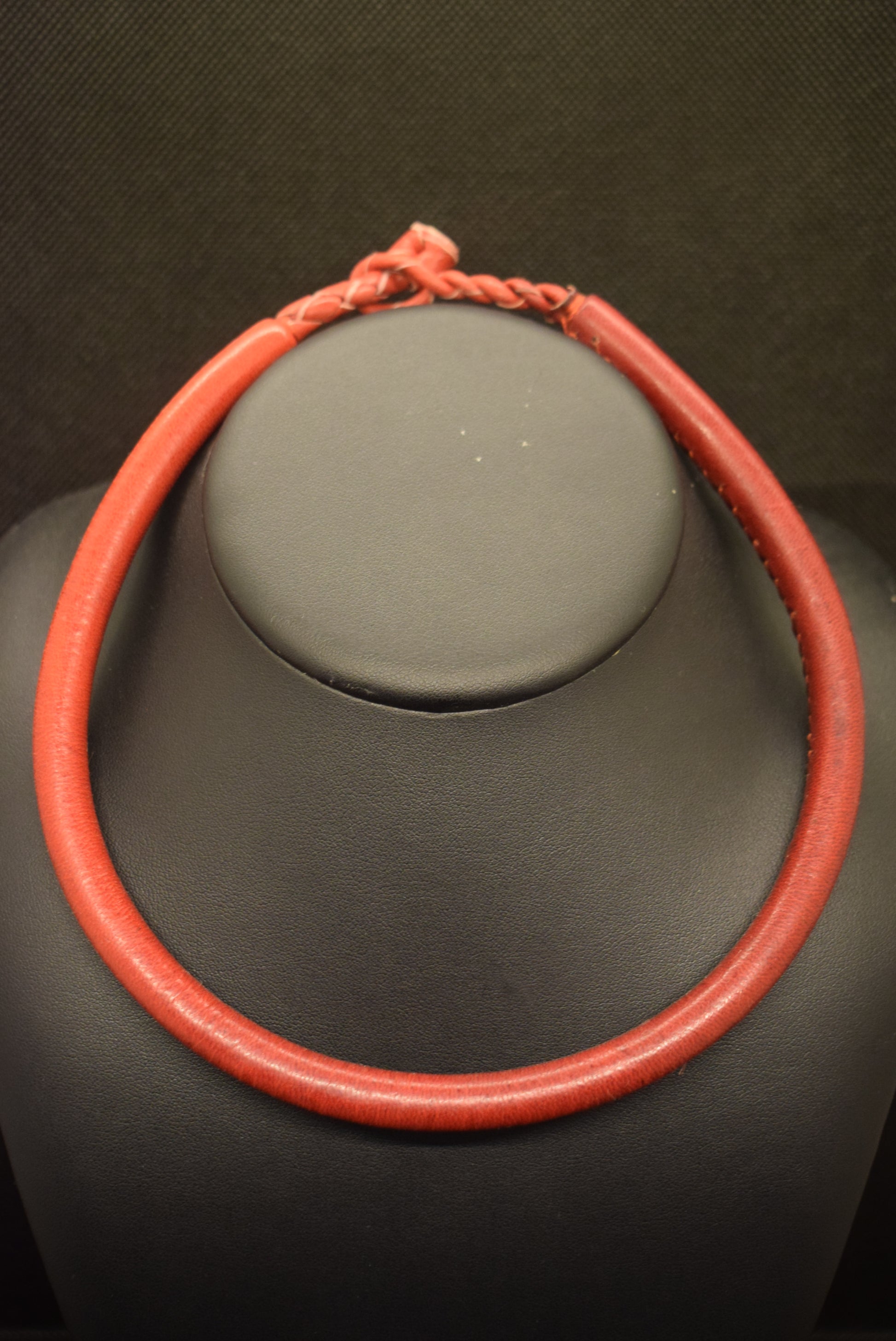 Collar africano traído de Ghana. Hecho a mano con hilos trenzados de cuero negro Pieza absolutamente única.