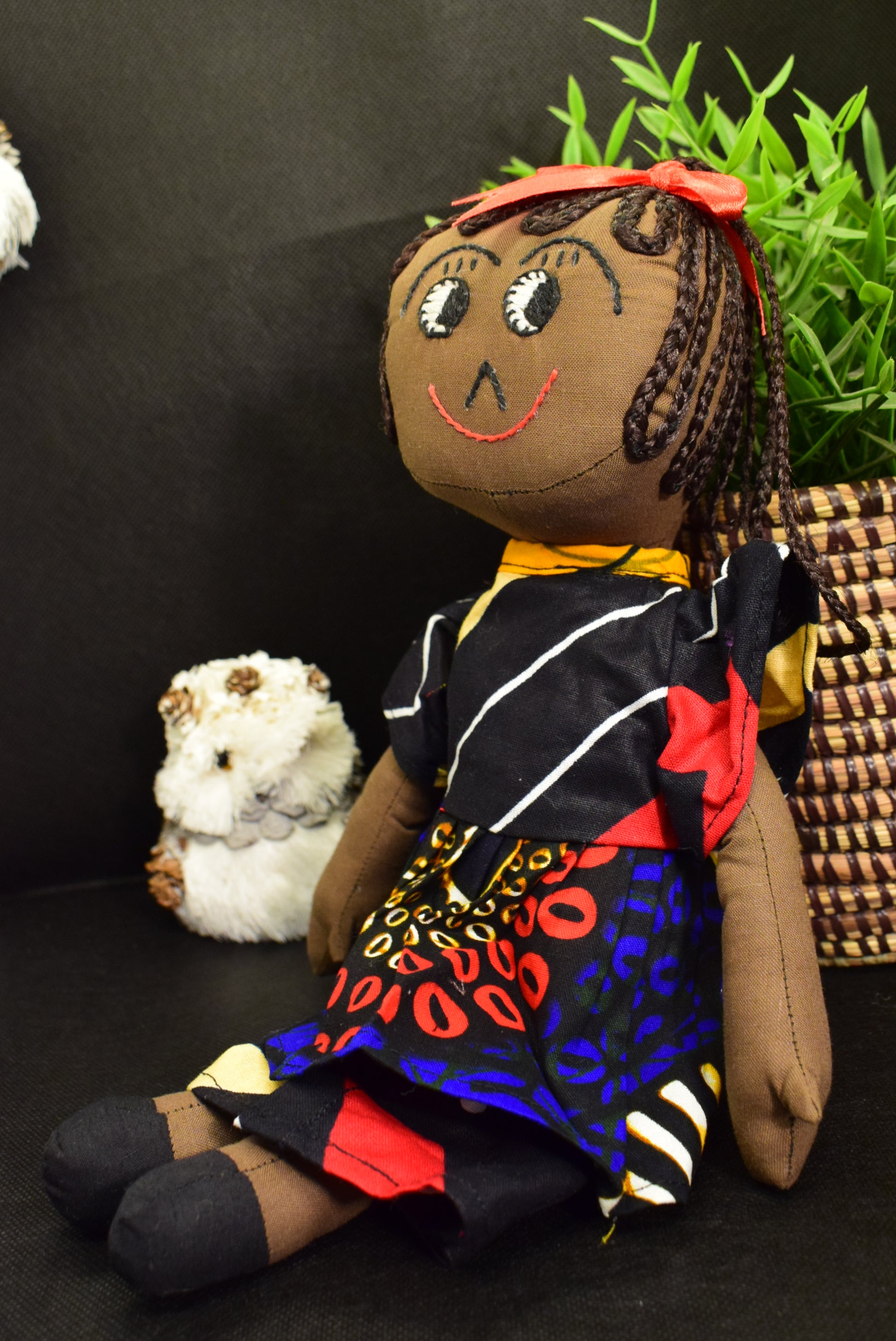 Muñeca de trapo africana hecho a mano, lleva un vestido tipico africano , con sus trenzas