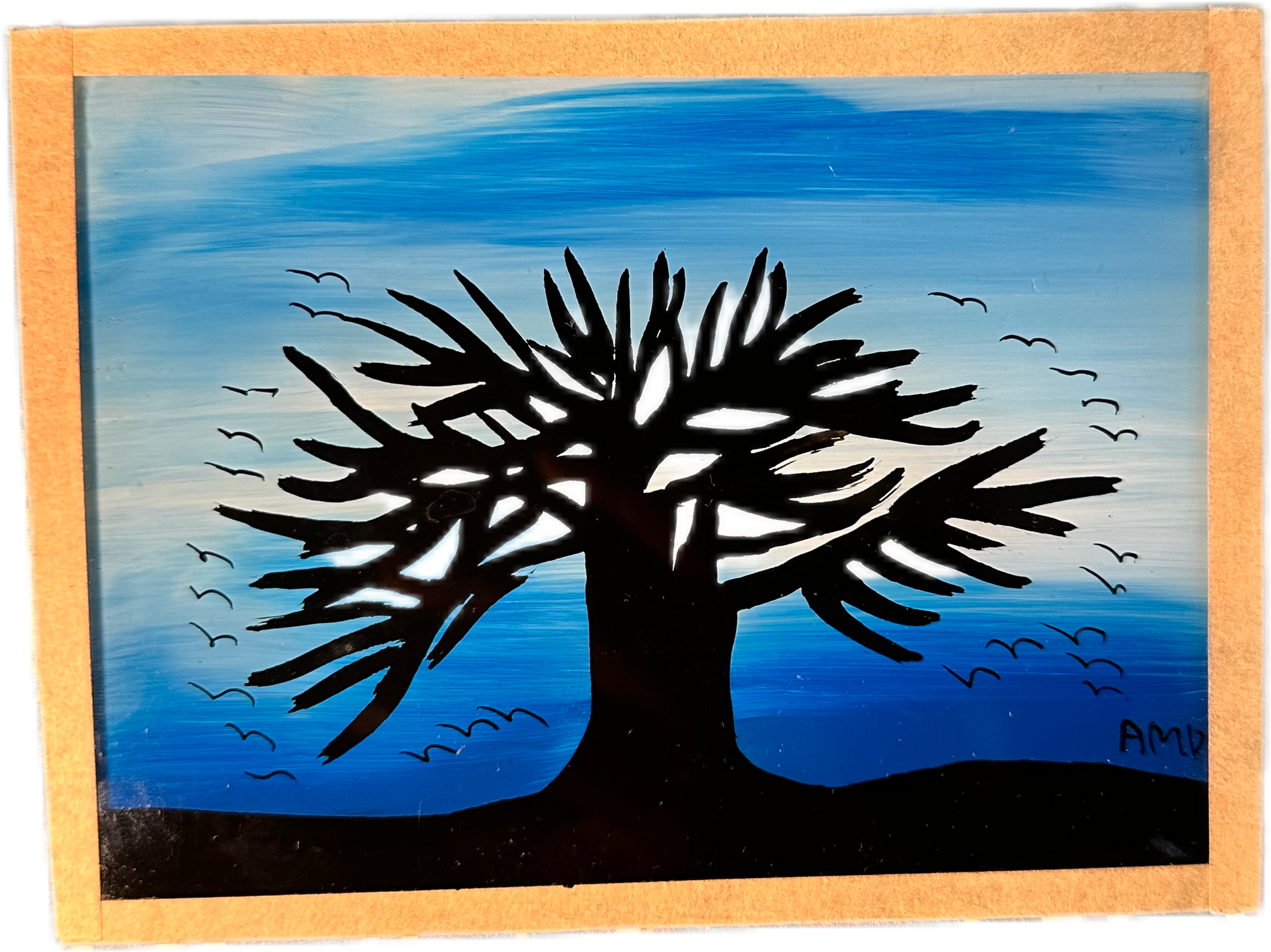 La pintura inversa sobre vidrio es una forma de arte que consiste en aplicar pintura a una pieza de vidrio y luego ver la imagen girando el vidrio y mirando la imagen a través del vidrio.