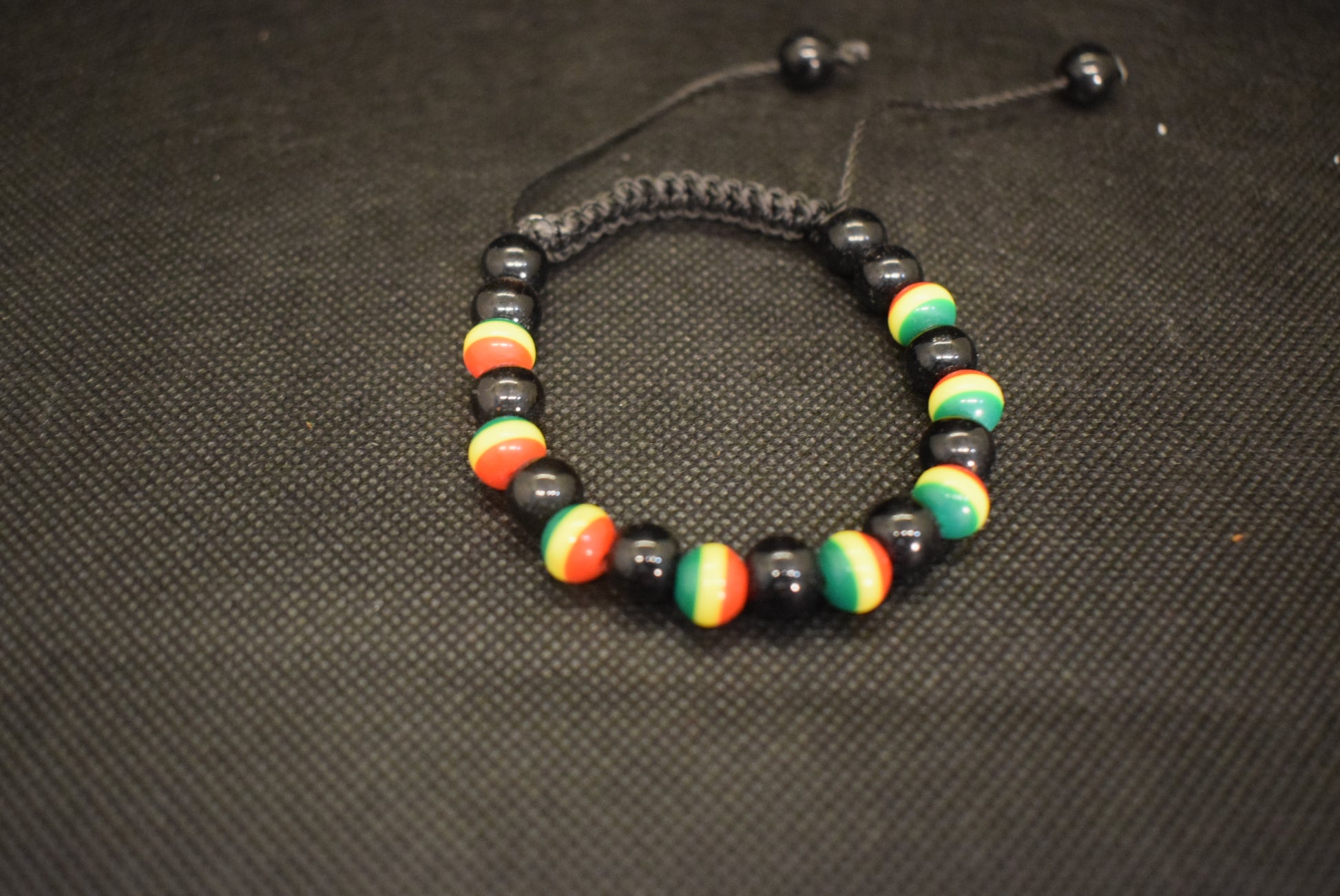 hechos a mano con bolitas con los colores de las banderas en africa verde, amarillo y rojo